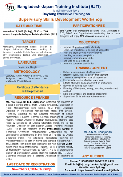 Resource Speaker: Mr. A.N.M. Shahjahan
