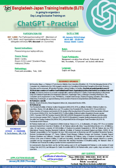 Resource Person: Khondkar Atique-e-Rabbani, B Tech (Hons), UK, FCA