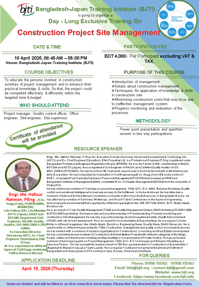 B.Sc. Engg.(Civil), PGDPM (BIM), MSDM (DU)
