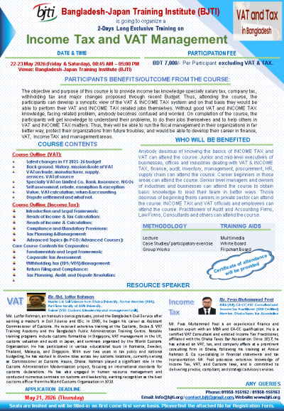 Practitioner (NBR Certified),Member, Dhaka Taxes Bar Association